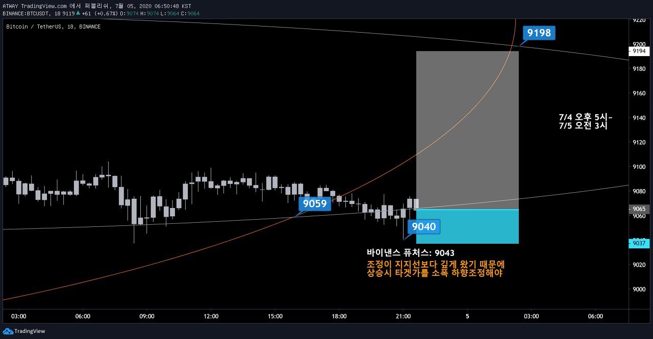 어제 저녁, 9059달러를 잠시동안 하방이탈한 뒤 재진입했습니다.