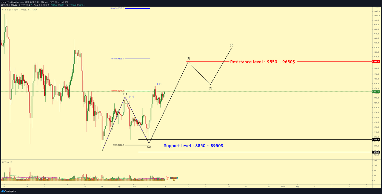 07월03일부터 주요한 지지레벨로 선정드렸던 8850 ~ 8950$에서 반등이 괜찮게 진행되고 있습니다