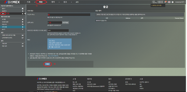 4) 자신이 출금할 비트코인 개수 입력