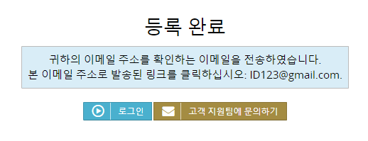 적으신 이메일로 가입인증 발송되오니 유의하시기 바랍니다