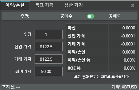 자기포지션의 이익,손실,청산가격을 계산할 수 있습니다.