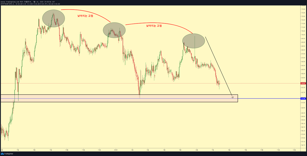 [비트코인/분석] 비트코인 지배력 떨어진다 by eunsa on TradingView.com