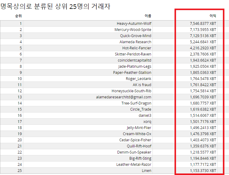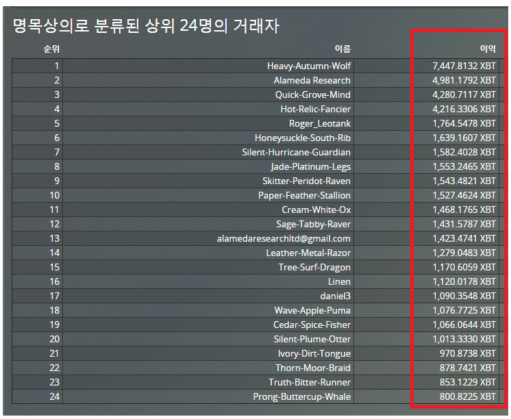 보시면 1위가 7천비트 넘게 가지고 있는 것을 확인해 볼 수 있고요.