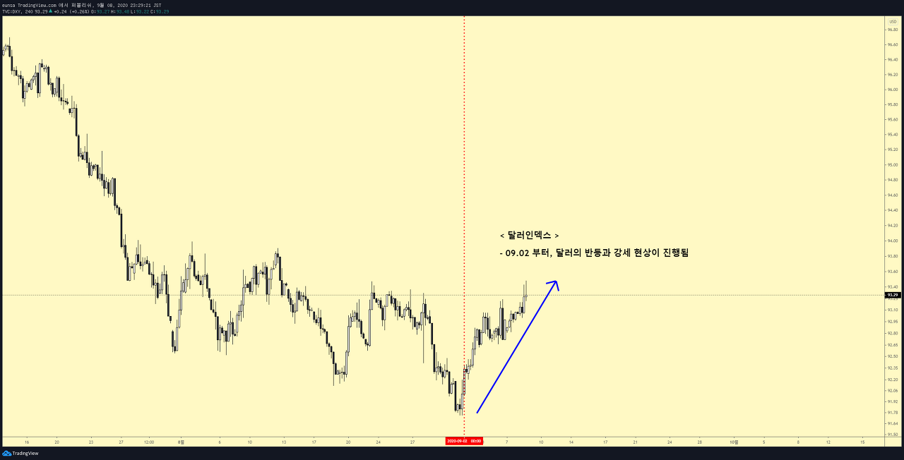 - 09.02 부터, 달러의 반등과 강세 현상이 진행됨