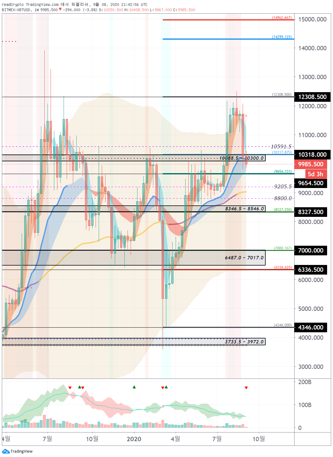 9970.0 지점에서 하락하게 된다면, 9617.0 지점을 터치할 것으로 예상됩니다.