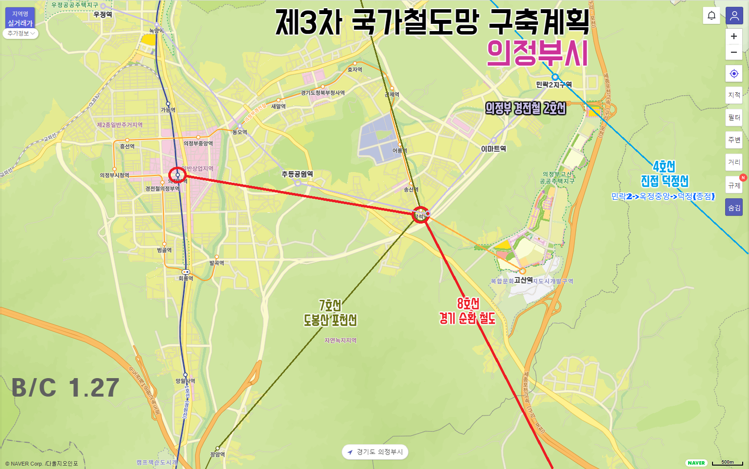 이렇게 되면 8호선이 탑석과 의정부를 지나 B/C가 최대치로 늘어납니다.