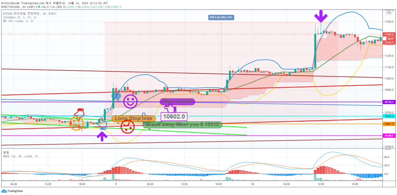 롱 진입이후부터 , 표시해드린 손절가 10601불 체크.