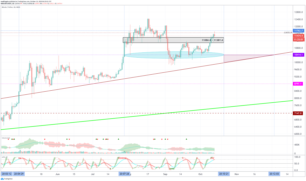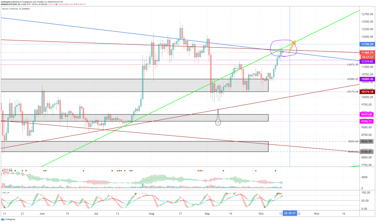 10월 17일경에 하락 추세선을 돌파하면서 11748.20 지점 이상 상승할 수 있을지 지켜봐야 합니다.