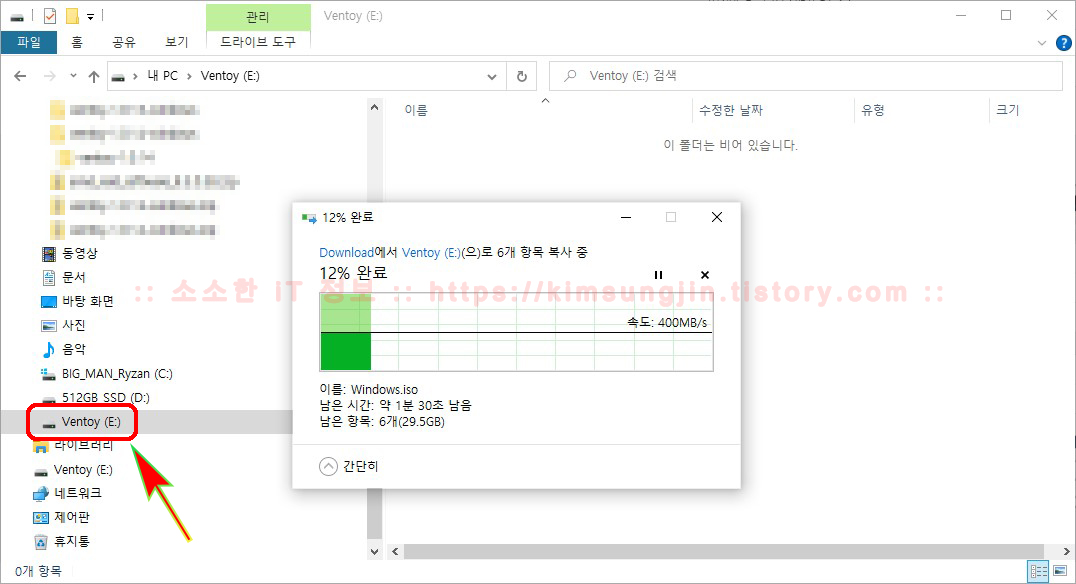 Ventoy를 이용한 Windows 10 설치 USB 만들기 - iodd를 위협하는 Ventoy
