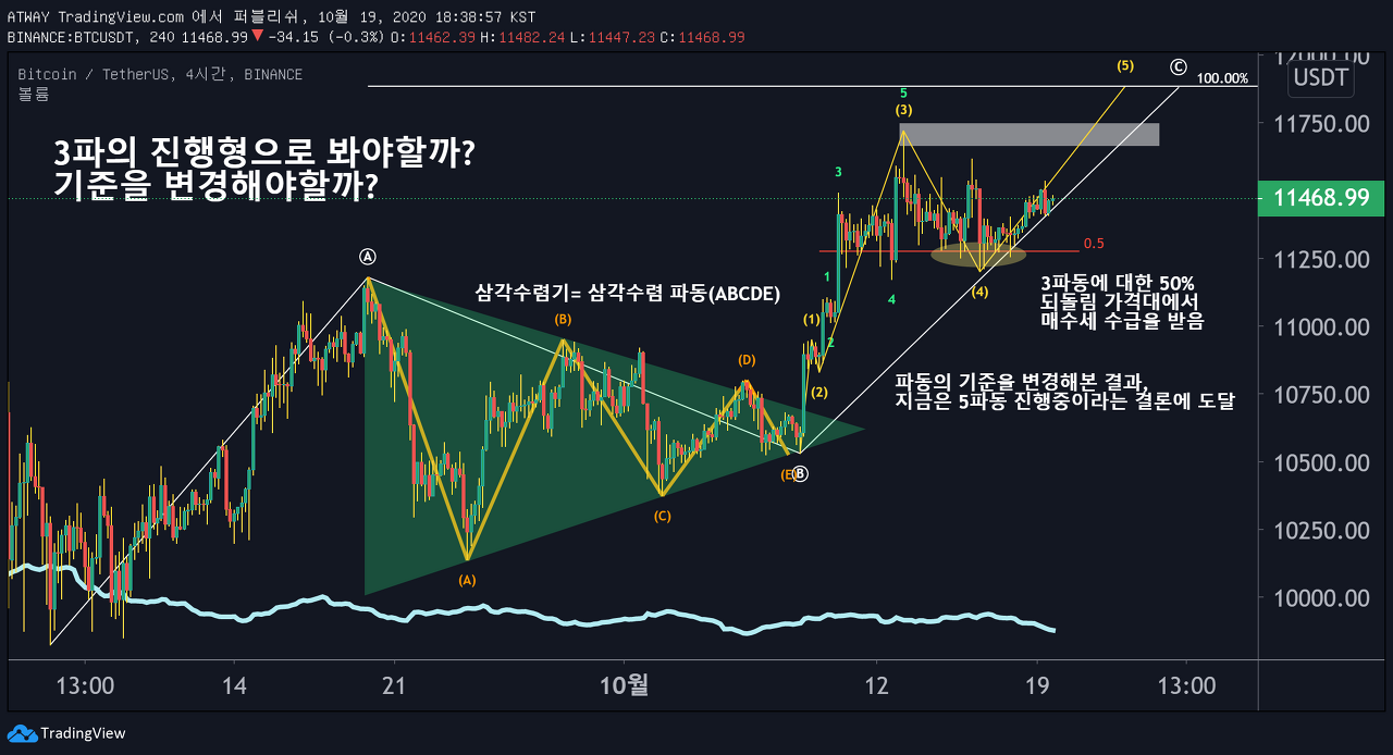아마도 이같은 카운팅을 하신분들은 비트가 내려가야되는데 안내려가니깐 고점 갱신의 가능성을 열어두기 시작하실 수 있습니다.