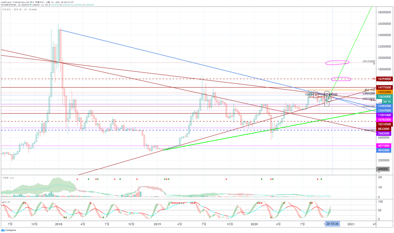10월 23일경부터 상승하여 돌파 지점인 14332000 지점 이상 상승할 수 있는지 지켜봐야 합니다.