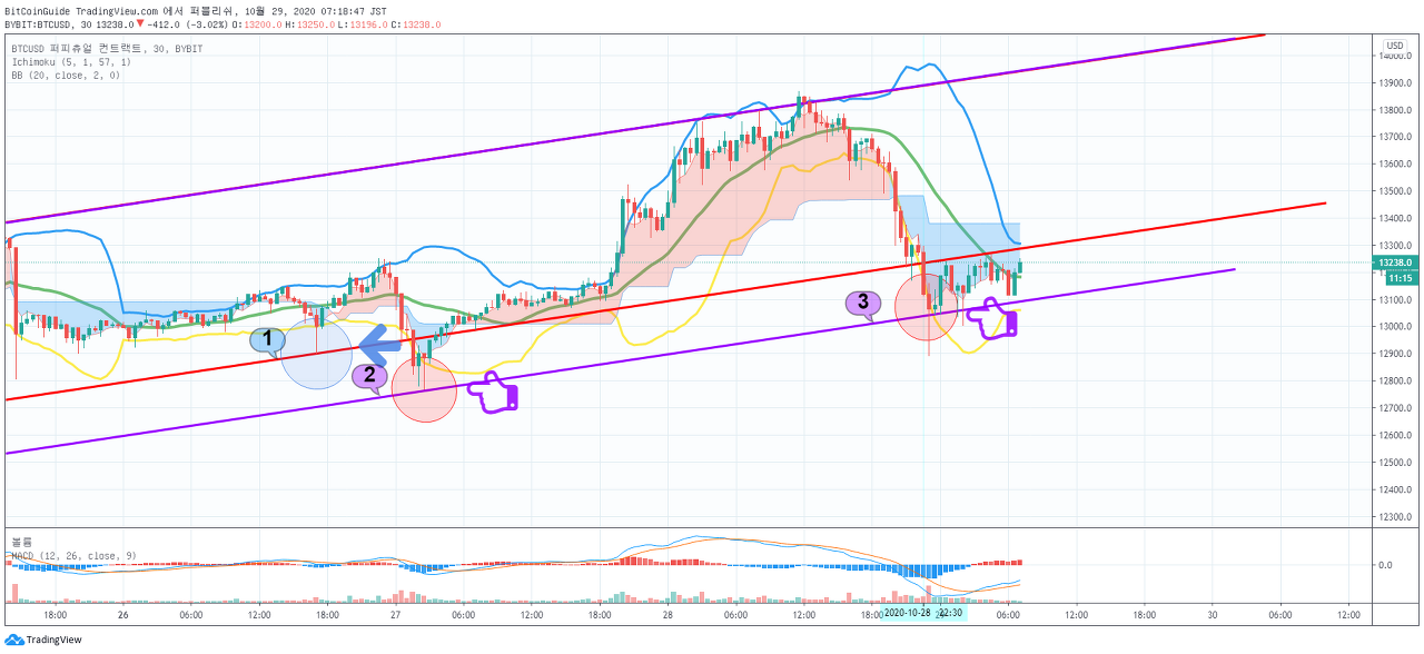 표시해드린 1 , 2 , 3 번구간에서 숏포지션 타이밍을 잡고