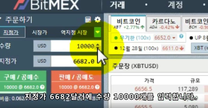 *지정가 주문 수수료: +0.0075% 받습니다.