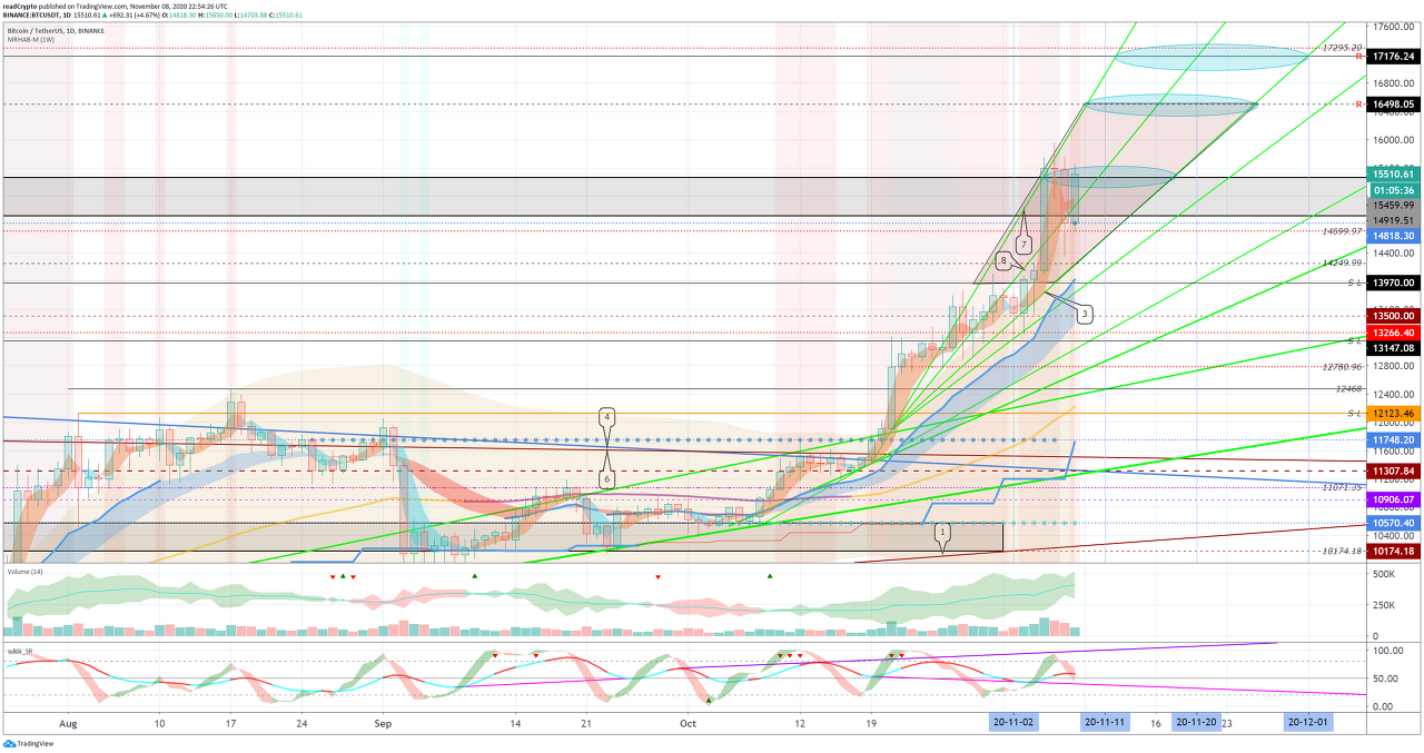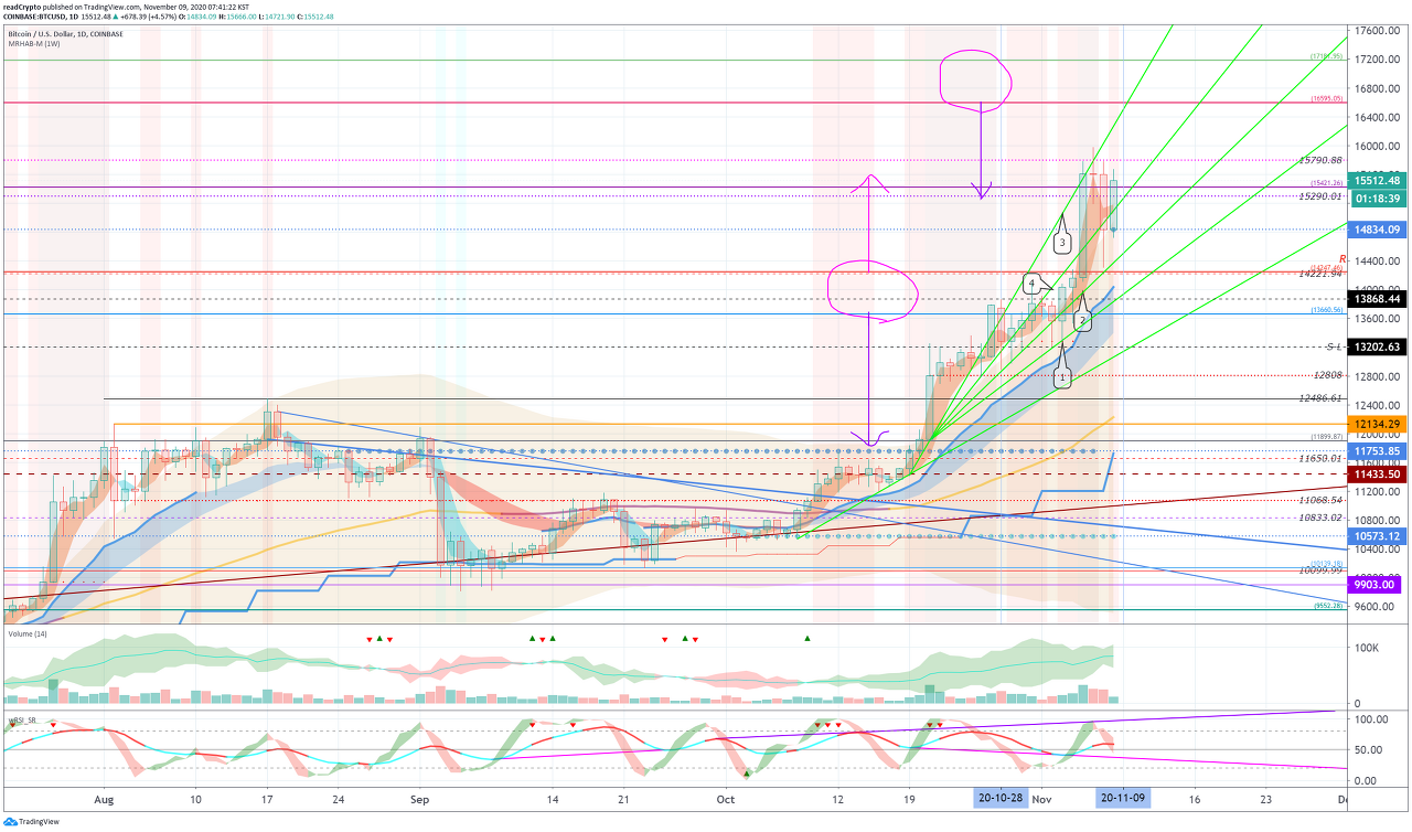 14919.51-15459.99 구간을 터치하고 상승할 수 있으므로, 신중한 트레이딩이 필요합니다.
