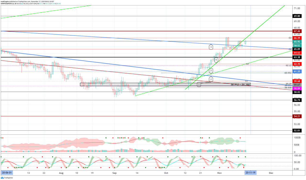 67.44 지점 이상 상승한다면 이미 하락장이 시작되졌을 것으로 예상됩니다.