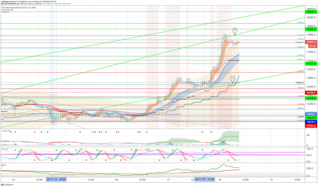 만일 진입을 하였다면, 17660.0 지점을 상향 돌파하는지 확인해야 합니다.)