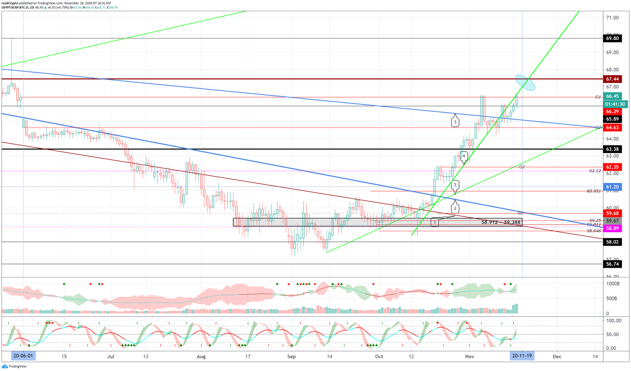 11월 19일-21일 사이에 67.44 지점을 터치하는지 지켜봐야 합니다.