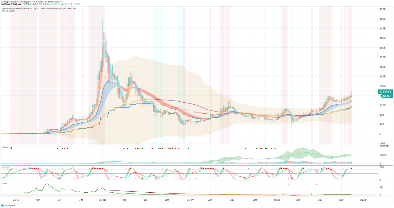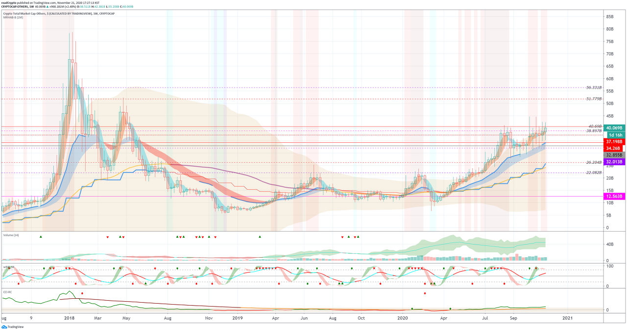 BTC, 메이저코인을 뺀 전체 알트코인의 도미넌스 차트