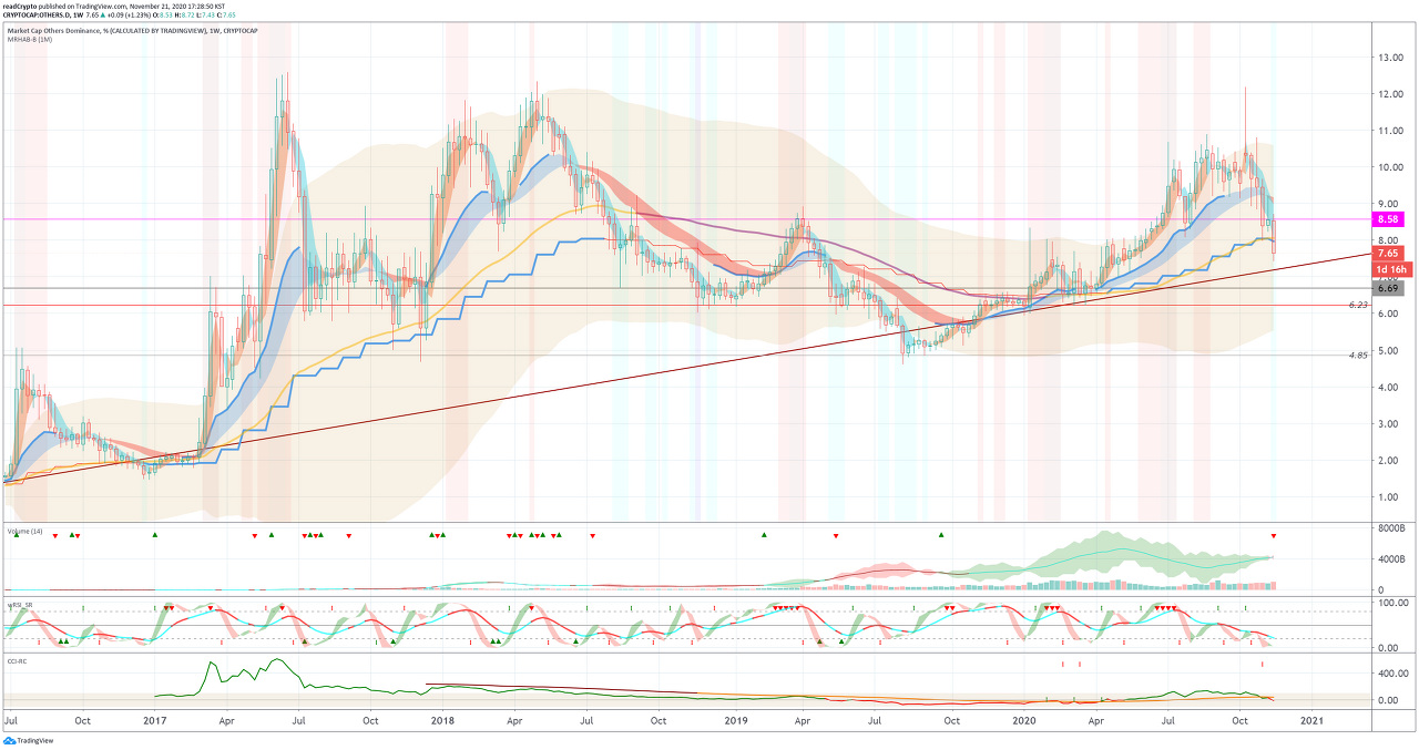 10월달에 급격하게 하락한 OTHERS 도미넌스가 상승할 수 있을지 지켜봐야 합니다.