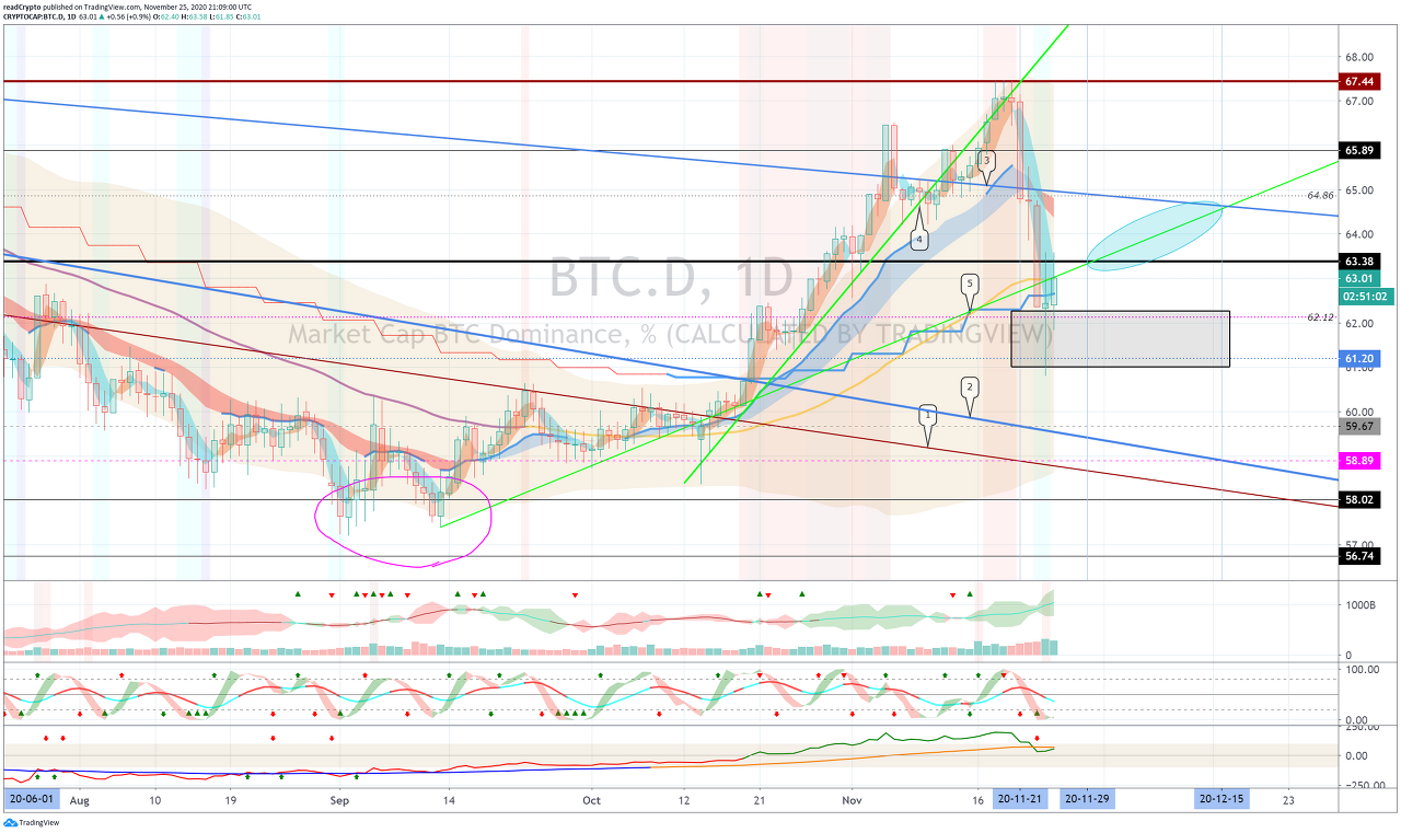 61.20-62.12 구간으로 하락할 수 있는지 지켜봐야 합니다.