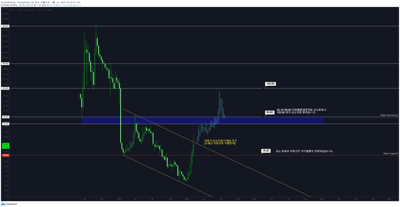2020-02-14 SNTKRW (스테이터스 네트워크 토큰) 저항선이탈시 거래전략 (빗썸) [공개퍼블리싱] by StreetMonkeys on TradingView.com