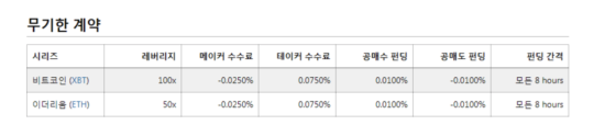지정가는 동일하지만, 시장가 수수료의 할인폭이 크기 때문에 수수료 측면으로 보았을 때 바이비트가 조금 유리하다고 할 수 있겠네요.