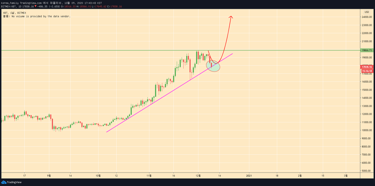 17800까지 올라오게됩니다. 저점이 올라오는 구조라고 보시면됩니다. 이부근에서 강하게 지지를 하는지 이탈하는지 체크가 필요합니다.