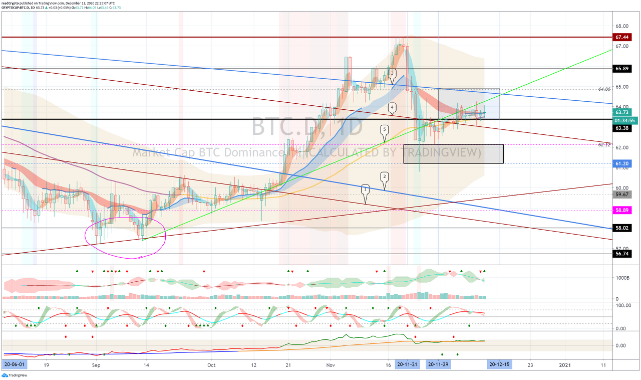 상승 추세선 (5)에서 저항을 받는다면, 63.38 지점 이하로 하락할 가능성은 있다고 생각합니다.