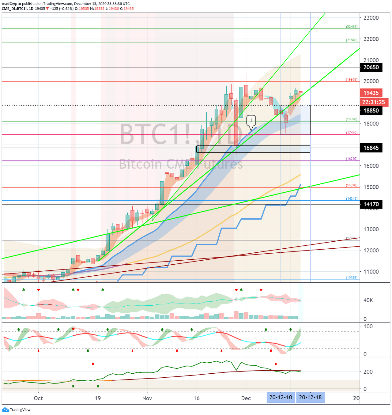 이에 따라서, 12월 18일경까지 19287.5 지점 근처에서 횡보하는 모습이 나온다면, 상승하기 위해 필요한 거래량을 끌어 모을 수 있다고 생각합니다.