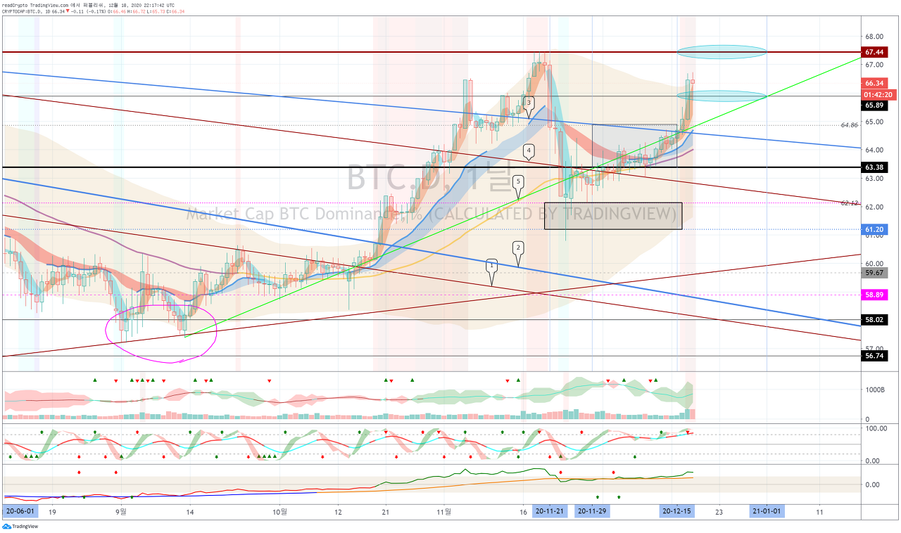 67.44 지점 이상 상승하게 된다면, 코인 시장은 급락이 나올 가능성이 있다고 예상됩니다.