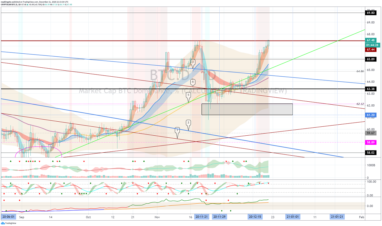 BTC 가격의 하락과 BTC 도미넌스의 상승으로 흐름이 전환된다면, 결국 급락이 나올 것으로 예상됩니다.