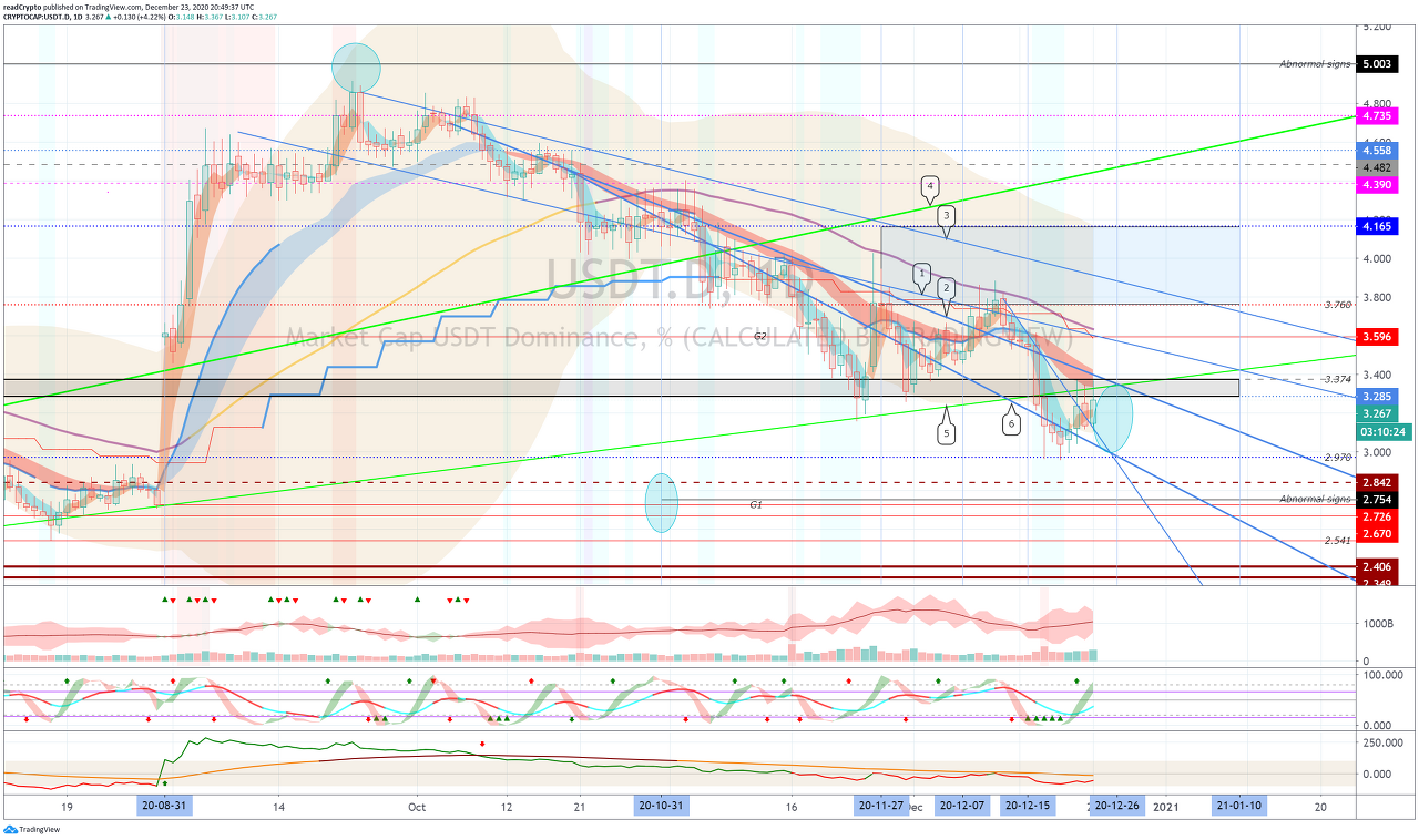이번 연말을 맞이하여 USDT 도미넌스가 3.596 지점 이하에 위치해 있다면, 추가적인 하락이 나올 것으로 예상됩니다.