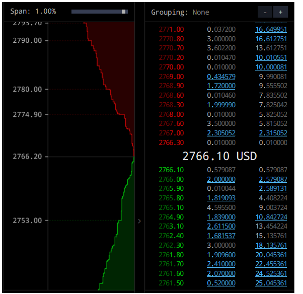 우측을 보면 하단은 매수가격와 누적 매수량.상단은 매도가격과 누적 매도량이 표시되어 있습니다.좌측 그림음 매도량,매수량을 시각적으로 표시한것으로.지금 현재 매수세가 강한지 매도세가 강한지.매도를 하고자하는 사람들이 많은지 매수를 하고자하는 사람이 많은지.그리고 수량은 얼마나 되며,가격은 얼마에 원하시는를 한눈에 확인이 가능합니다.