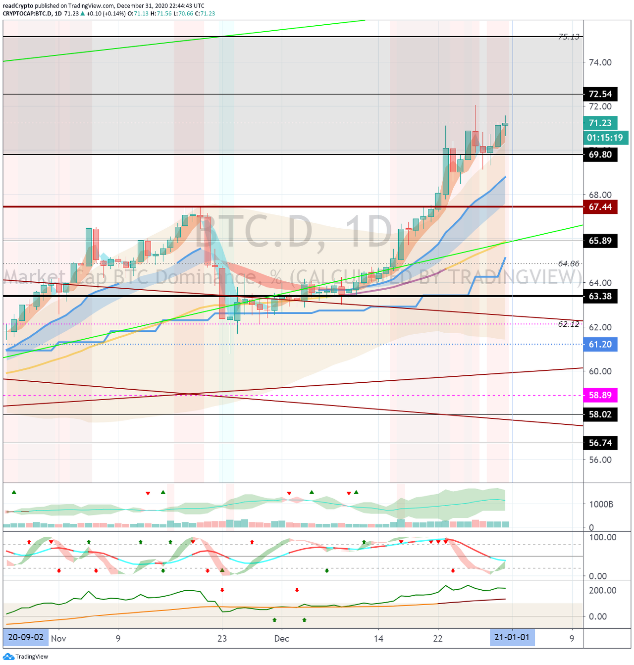 1월 1일경의 변동성으로 BTC 도미넌스가 하락할 수 있는지 확인해야 합니다.