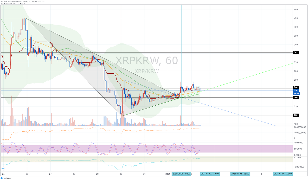 (업비트 XRPKRW 1h 차트)