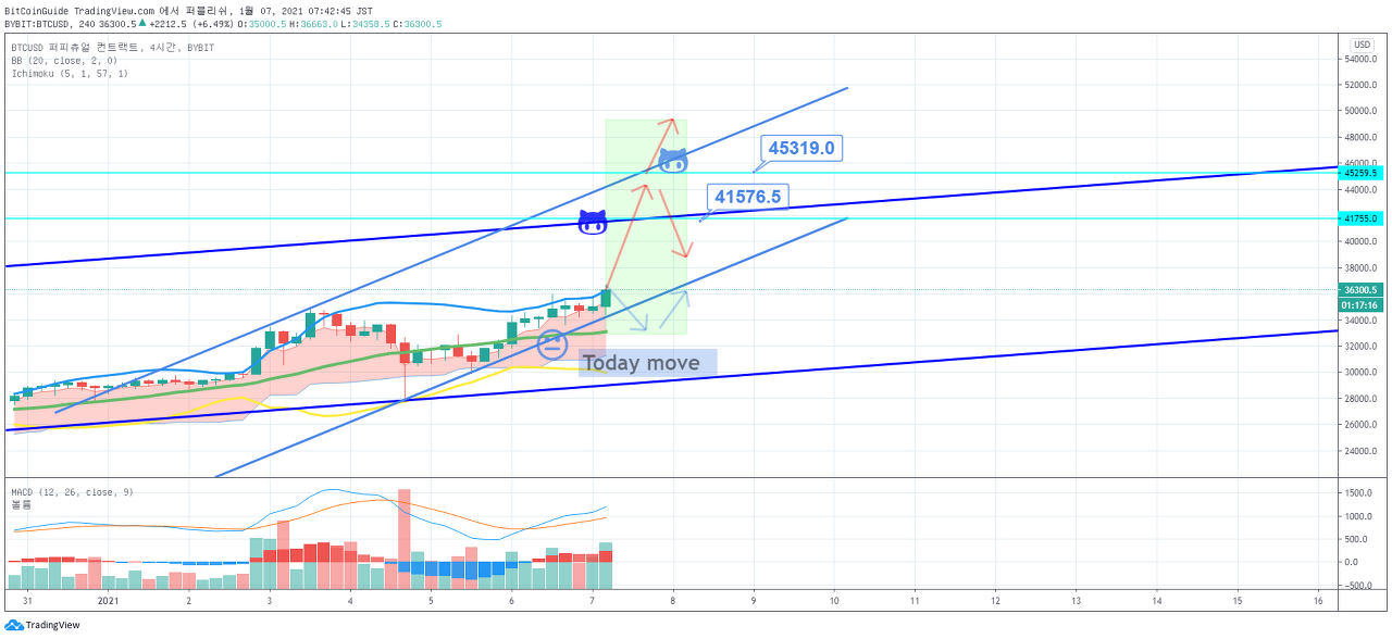 BTCUSD 1월 7일 비트코인 차트분석입니다. by BitCoinGuide on TradingView.com