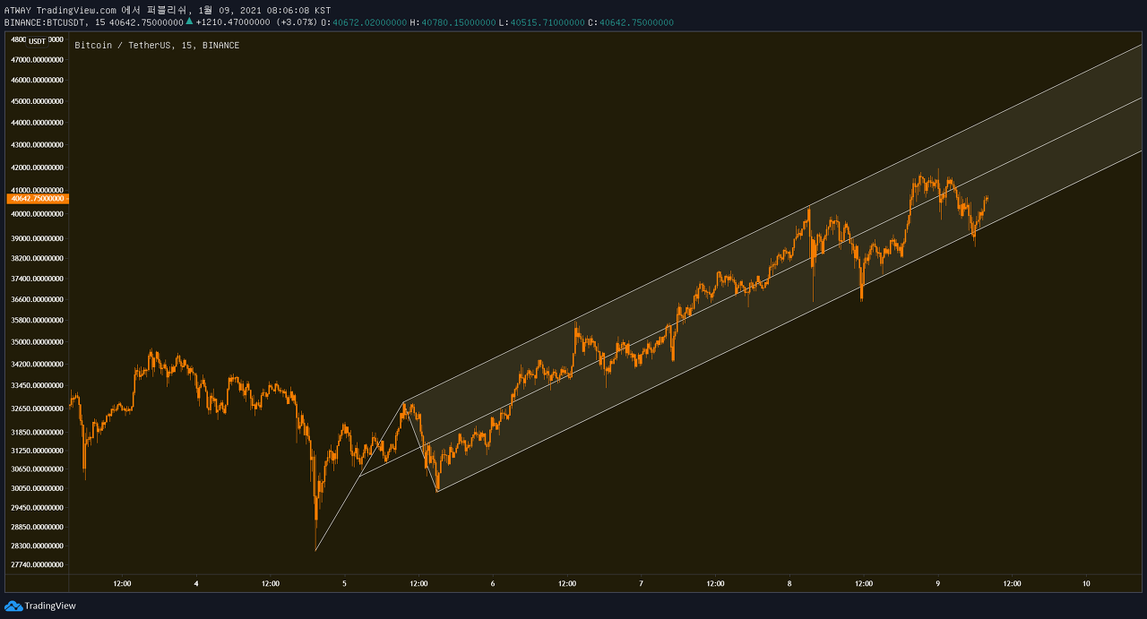 그런데, 기준을 추세선에서 채널로 확장했을 시 조금 다른 관점으로 접근할수도 있습니다.