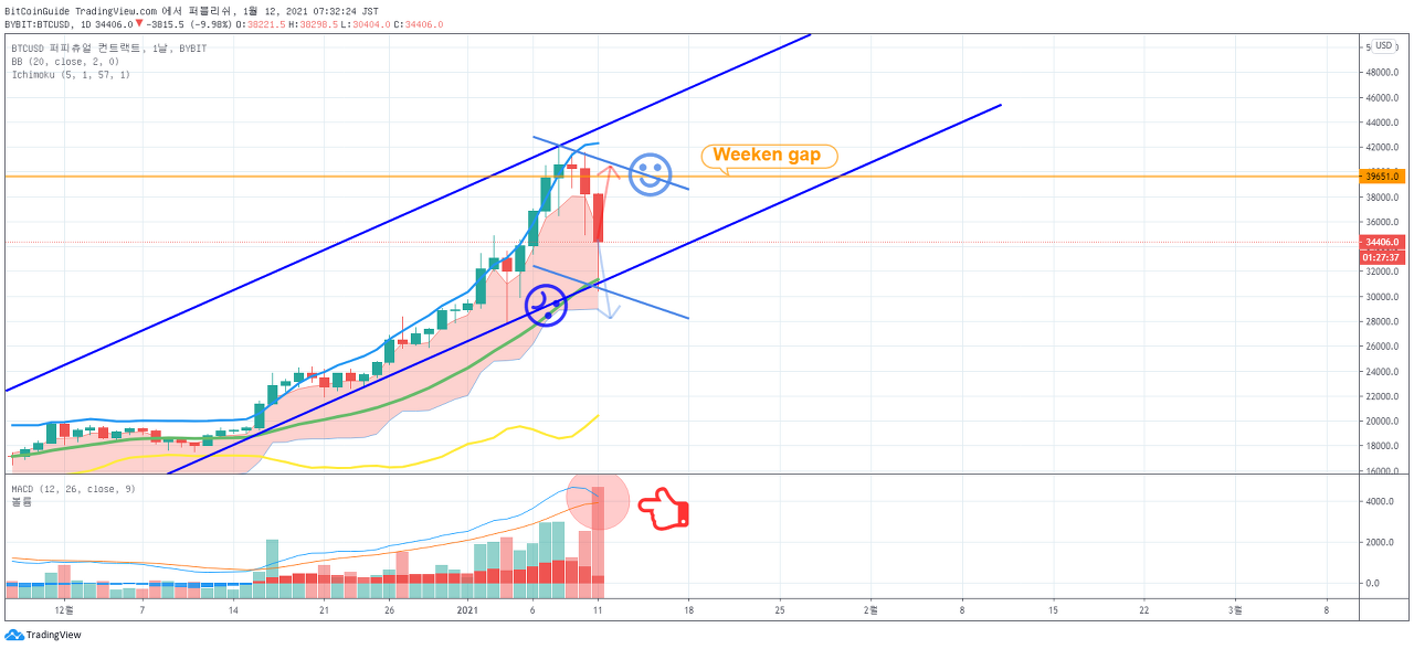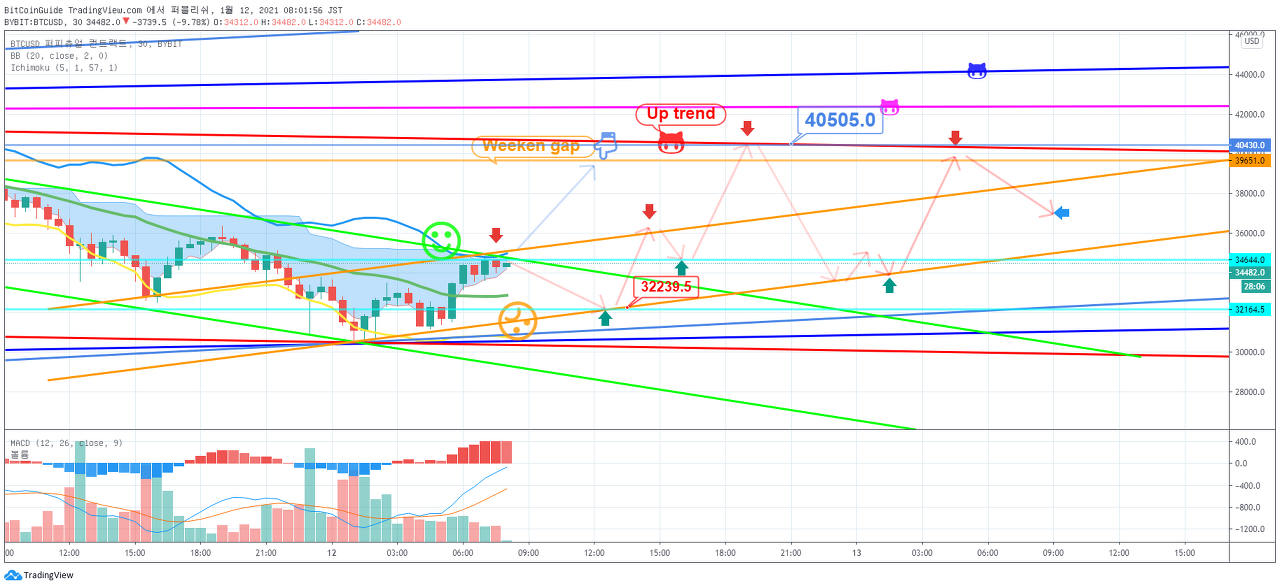 1월 12일 BTCUSD 비트코인 차트분석입니다. by BitCoinGuide on TradingView.com