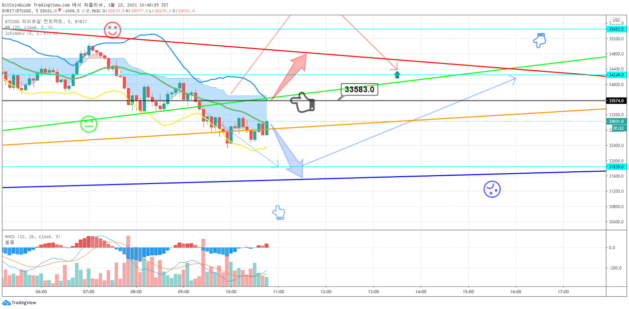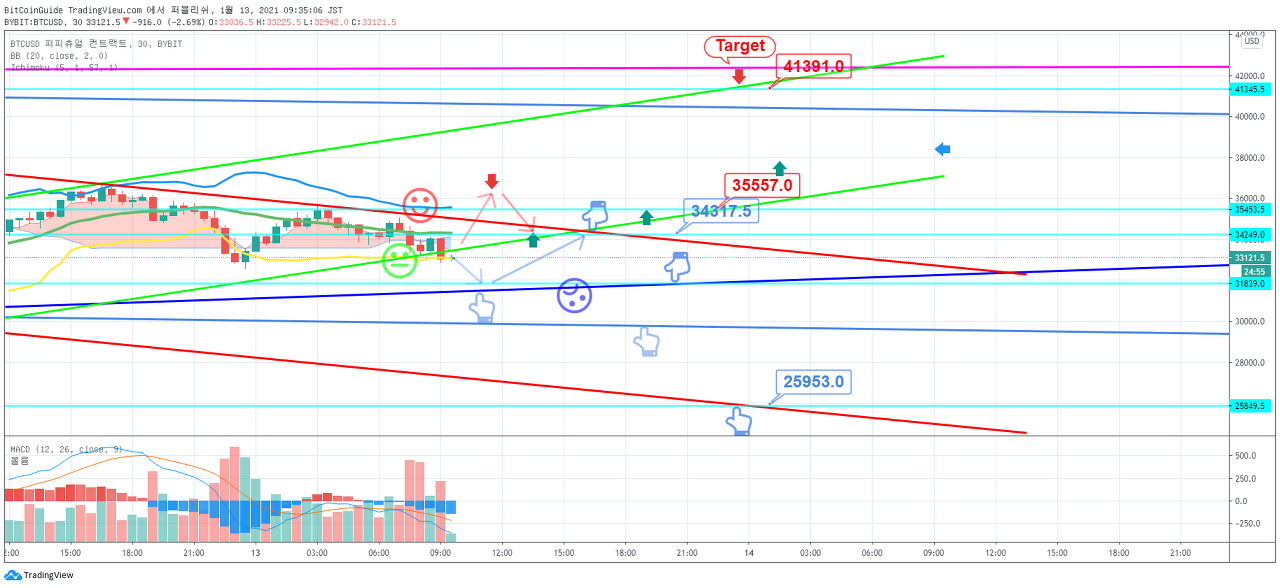 1월 13일 비트코인 bybit 차트분석입니다. by BitCoinGuide on TradingView.com