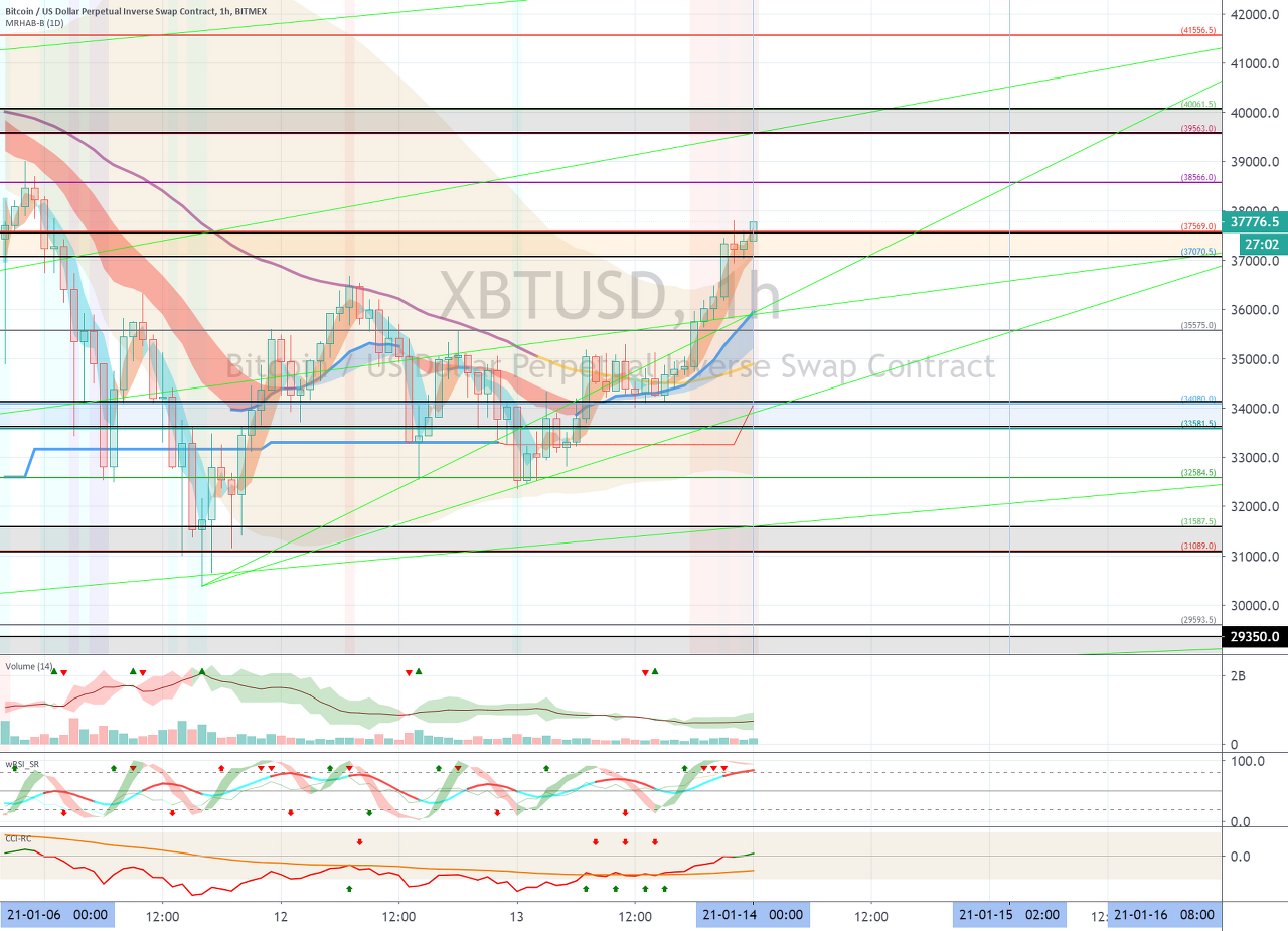 1월 19일경의 변동성으로 35664.0-40016.0 구간에서 벗어나는 움직임이 나오는지 지켜봐야 합니다.