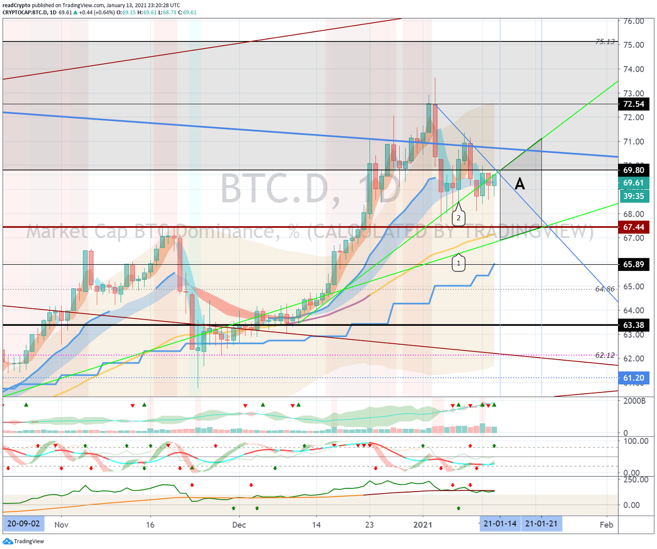 A 구간으로 진입하게 된다면, 1월 21일경 사이에 알트코인의 방향을 다시 결정할 것으로 예상됩니다.