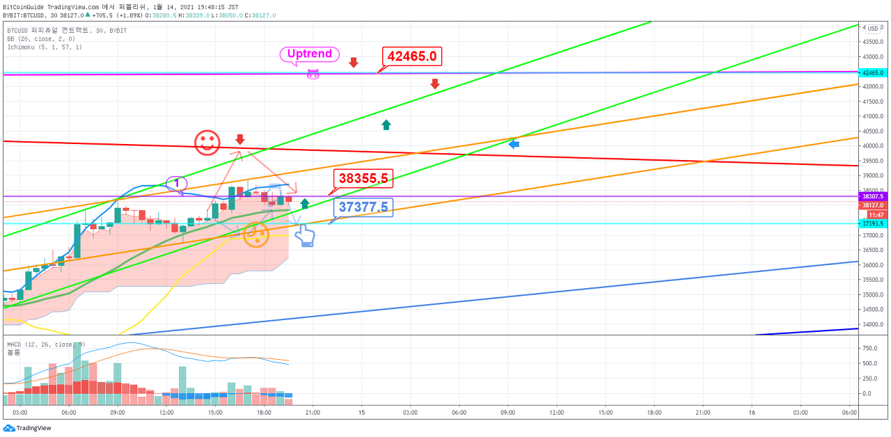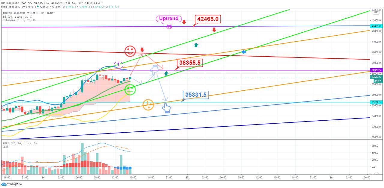 1월 14일 비트코인 bybit 차트분석입니다. by BitCoinGuide on TradingView.com