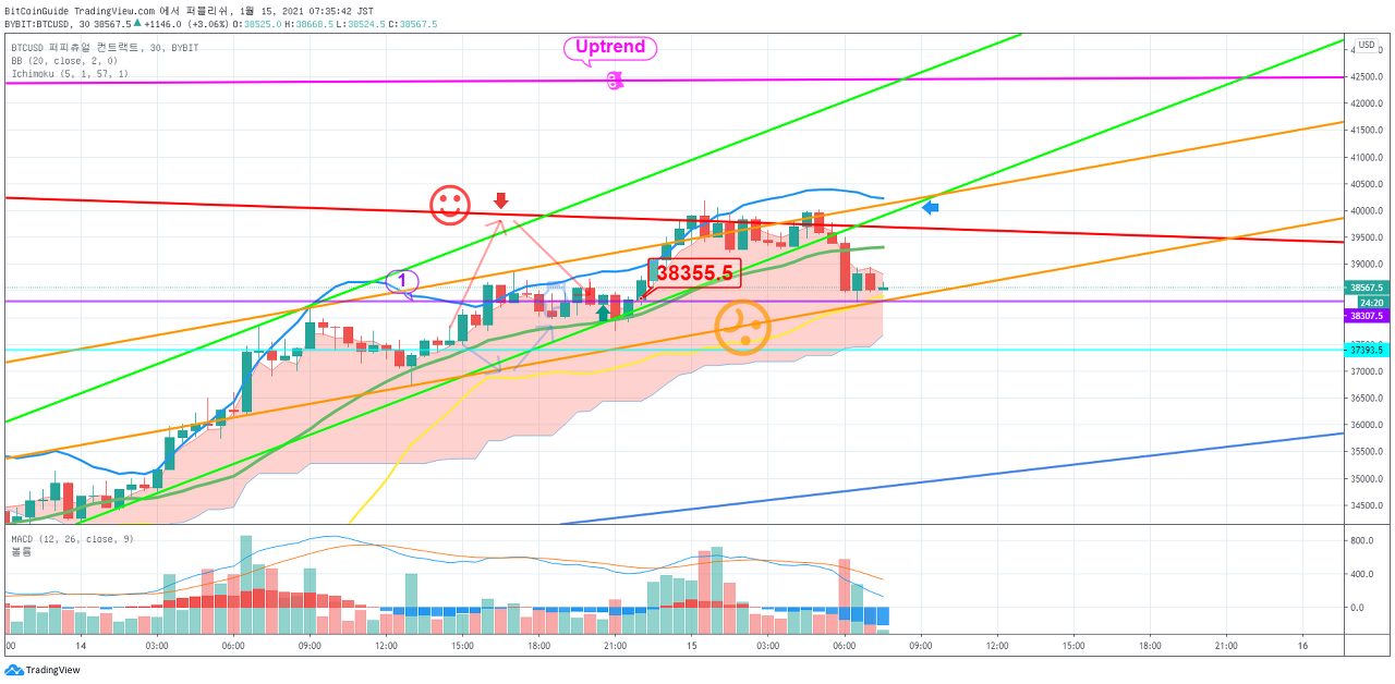 1월 15일 비트코인 차트분석입니다. by BitCoinGuide on TradingView.com