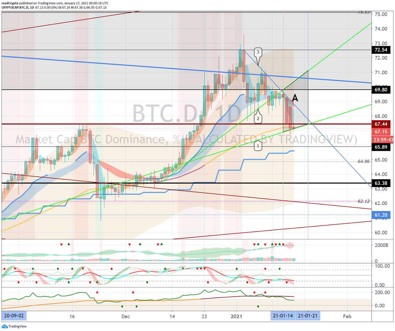 특히, 67.44 지점 이하로 하락한다면 알트코인의 상승 추세가 예상되고, 63.38 지점 이하로 하락한다면 상승장이 예상됩니다.