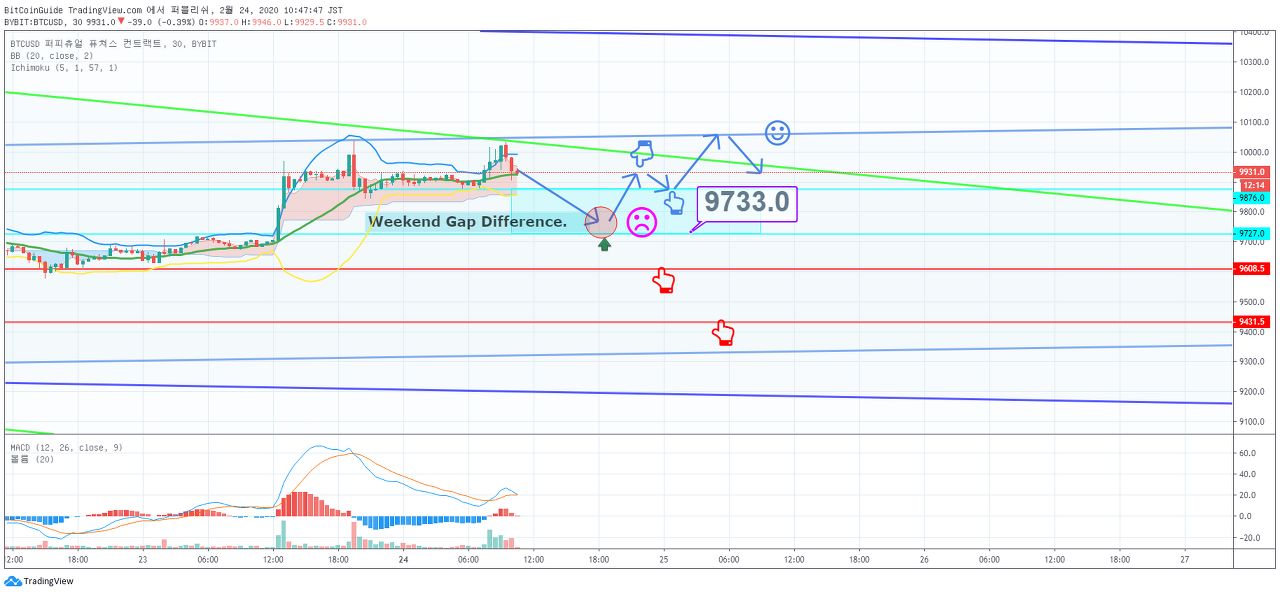 BTCUSD 2월 24일 바이비트 비트코인 차트분석 시작할게요.