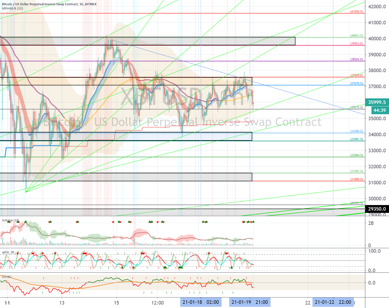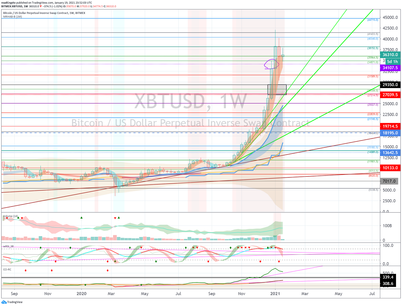 1월 19일경의 변동성으로 35664.0-40016.0 구간에서 벗어나는 움직임이 나오는지 지켜봐야 합니다.