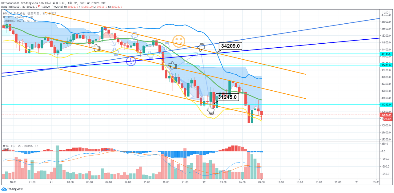 1월 22일 비트코인 Bybit 차트분석입니다. by BitCoinGuide on TradingView.com
