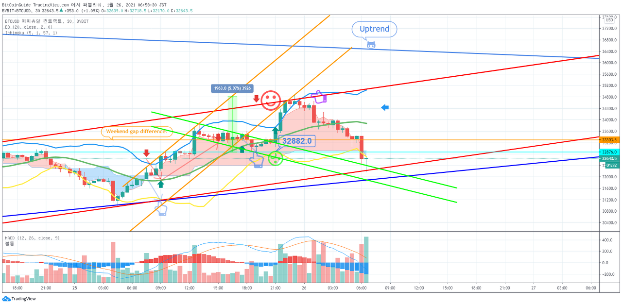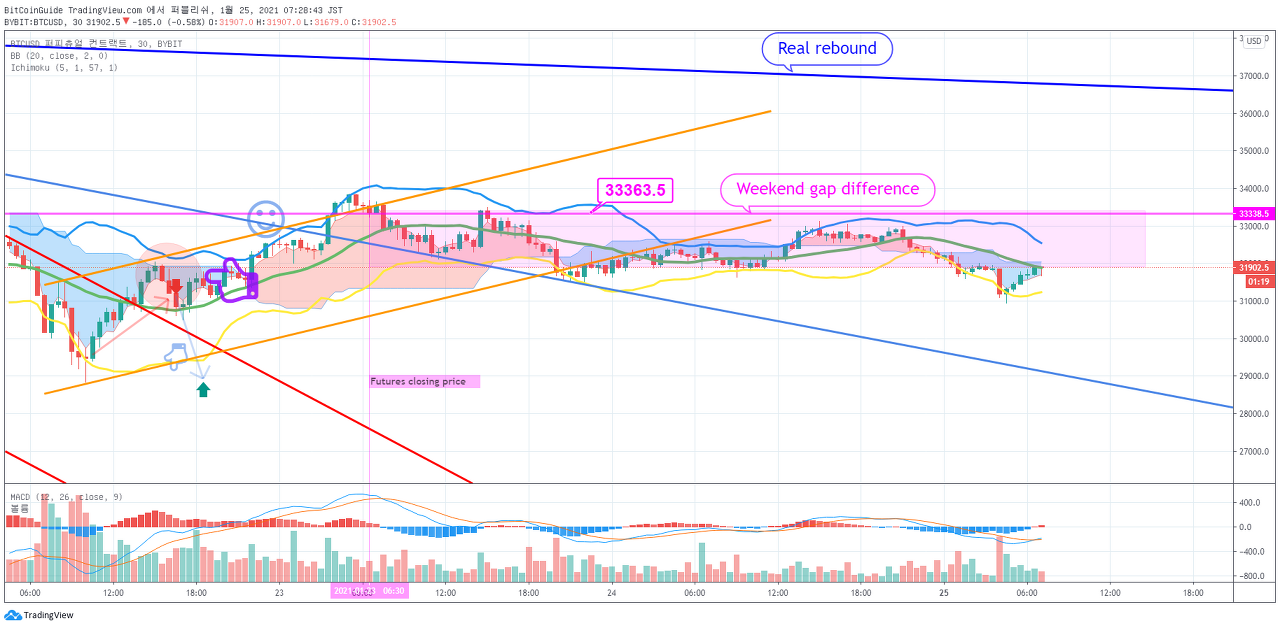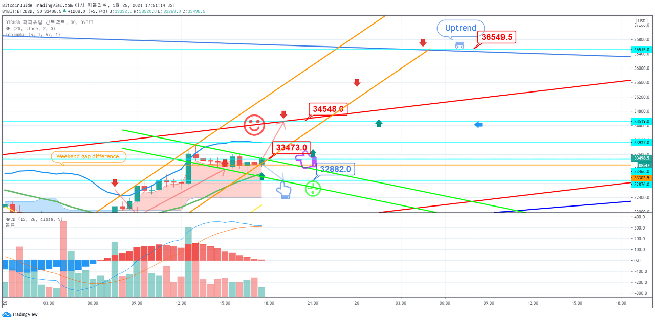 1월 25일 비트코인 Bybit 차트분석입니다. by BitCoinGuide on TradingView.com