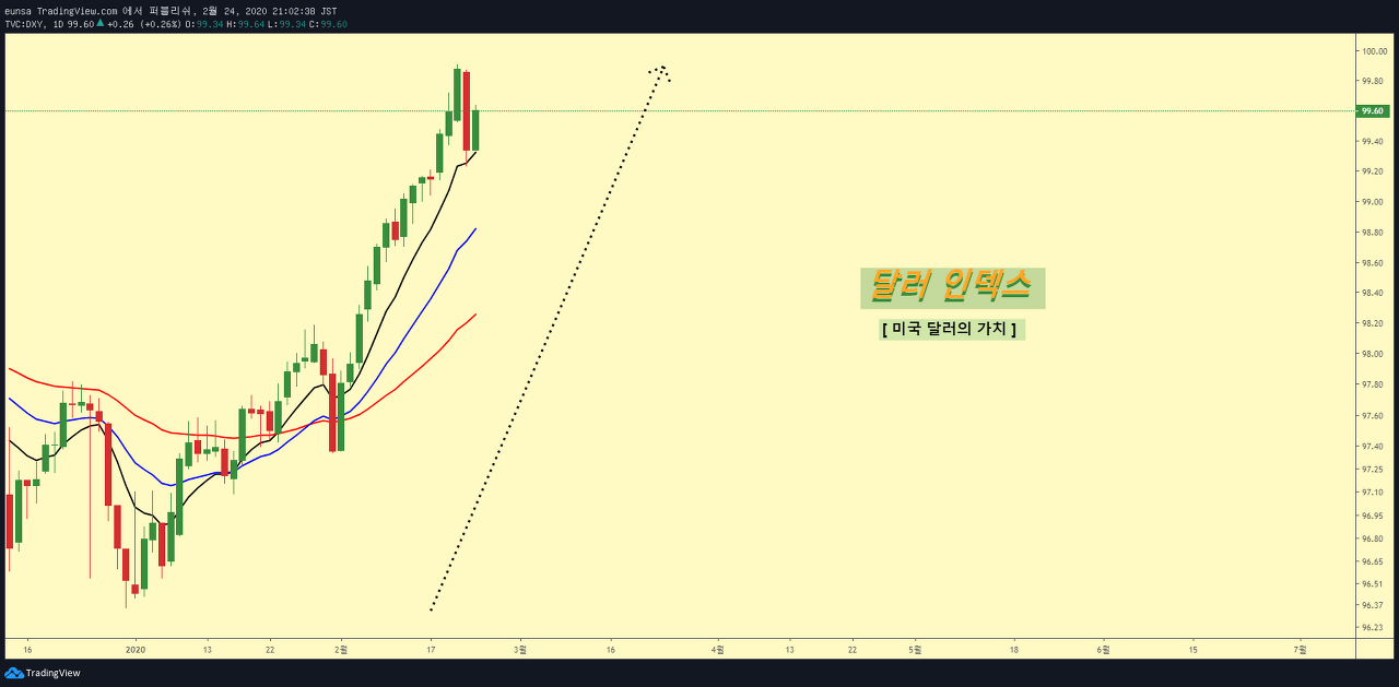 (1) 달러인덱스가 상승하면 미 달러 가치가 오른다는 뜻입니다