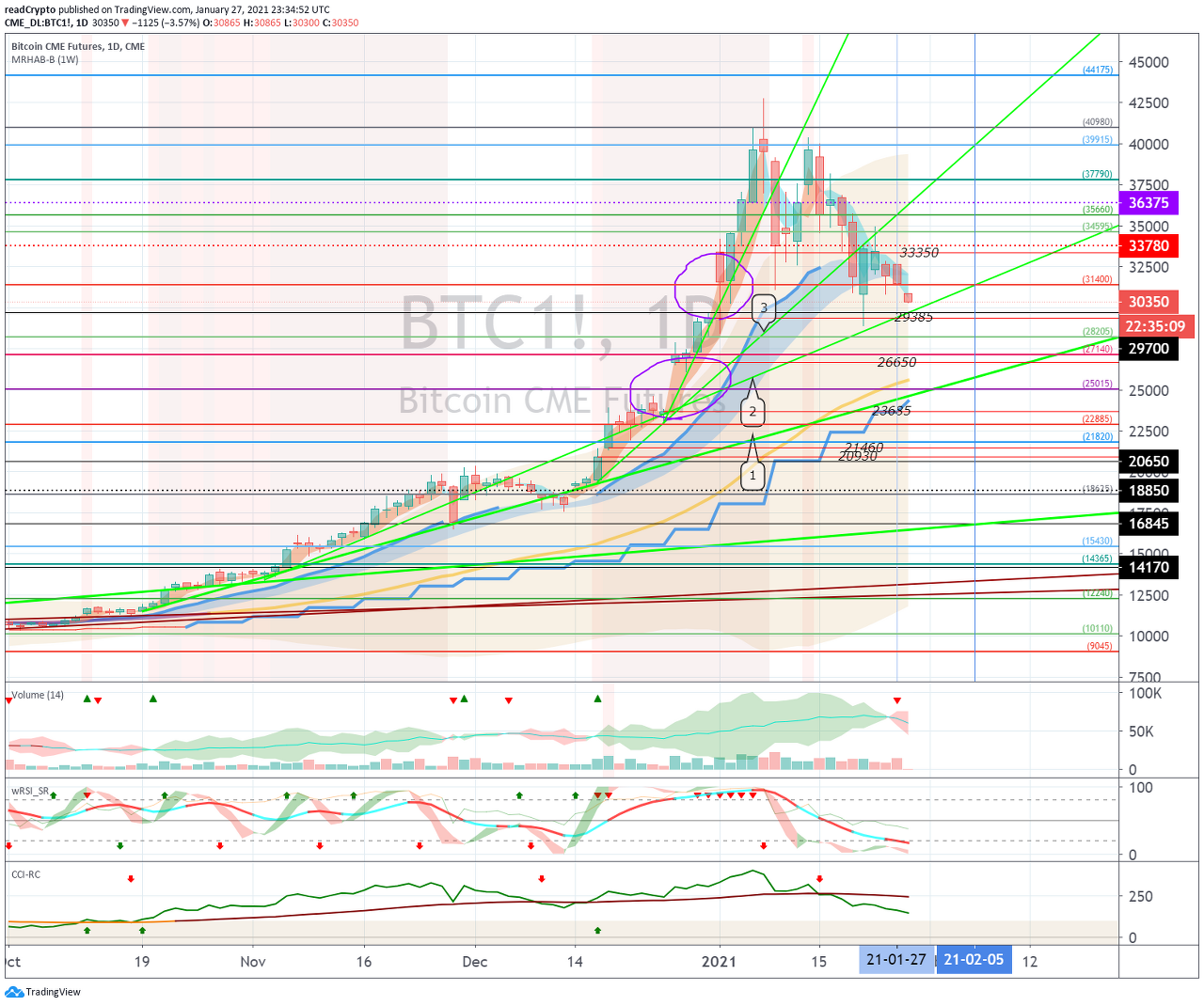 1월 28일경 (1월 27일-29일)에 시작되는 변동성으로 29350.0 지점과 35964.5 지점을 터치할 수 있으므로 신중한 트레이딩이 필요합니다.